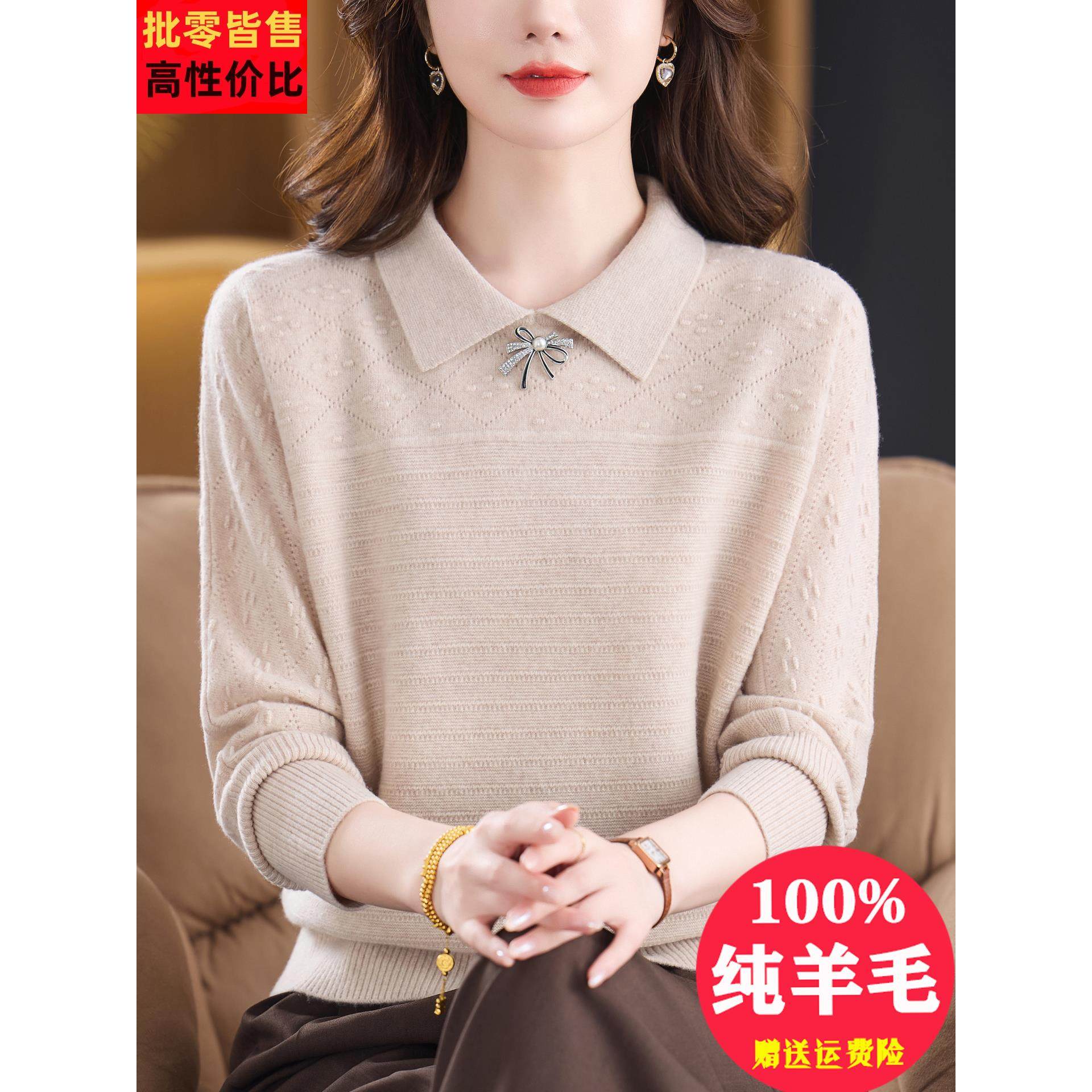 轻奢娃娃领100纯羊毛绒衫女士针织上衣秋冬气质减龄妈妈打底毛衣