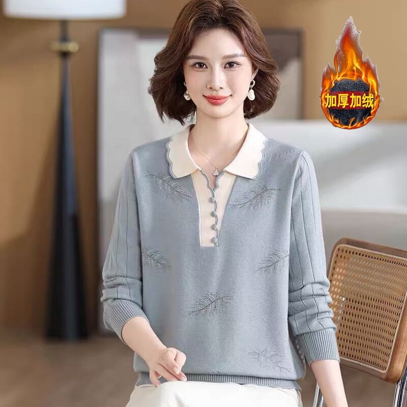 时尚妈妈秋冬装加绒保暖打底衫高贵加厚毛衣中老年女装羊气质上衣