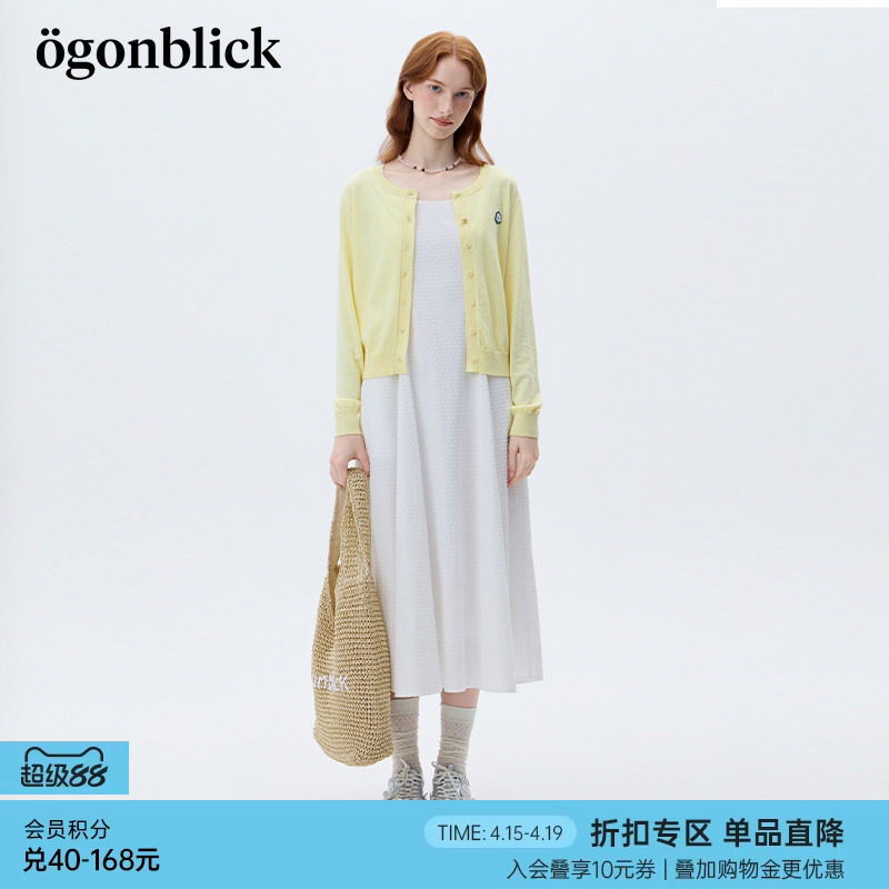 甜美少女风奶黄色针织开衫毛衣外套女蝴蝶结白色吊带连衣裙两件套