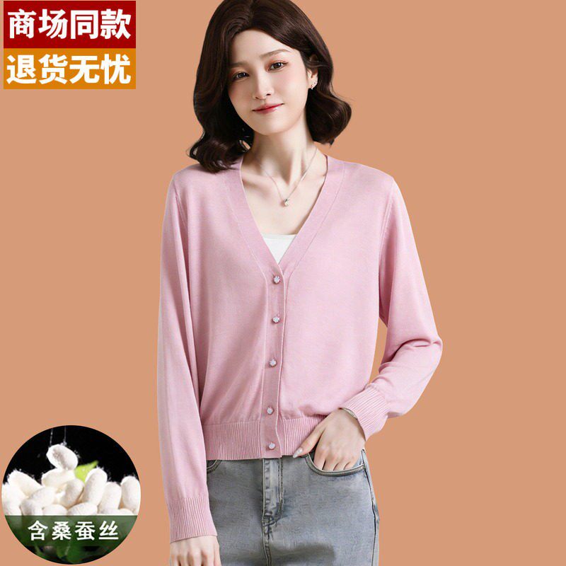 桑蚕丝针织开衫女短款2026夏季冰丝外搭吊带裙子巨好看减年防晒衣