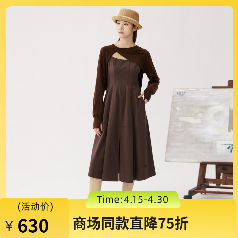 谜底两件套连衣裙秋新品复古风吊带中长裙+毛衣罩衫243ML1057