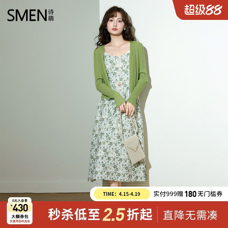 【商场同款】Smen诗萌毛衣外套吊带碎花裙时尚气质针织连衣裙套装