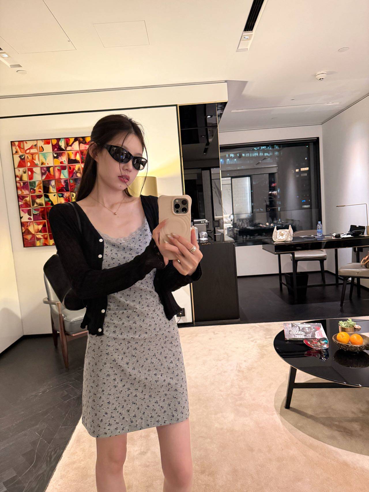 oker章壳儿正品~碎花吊带连衣裙+针织开衫毛衣外套短裙A770