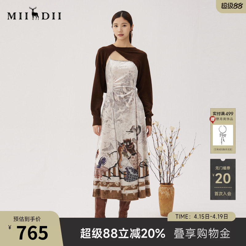 谜底【湘绣系列】两件式连衣裙2024秋款丝绒吊带裙+毛衫243GL1177