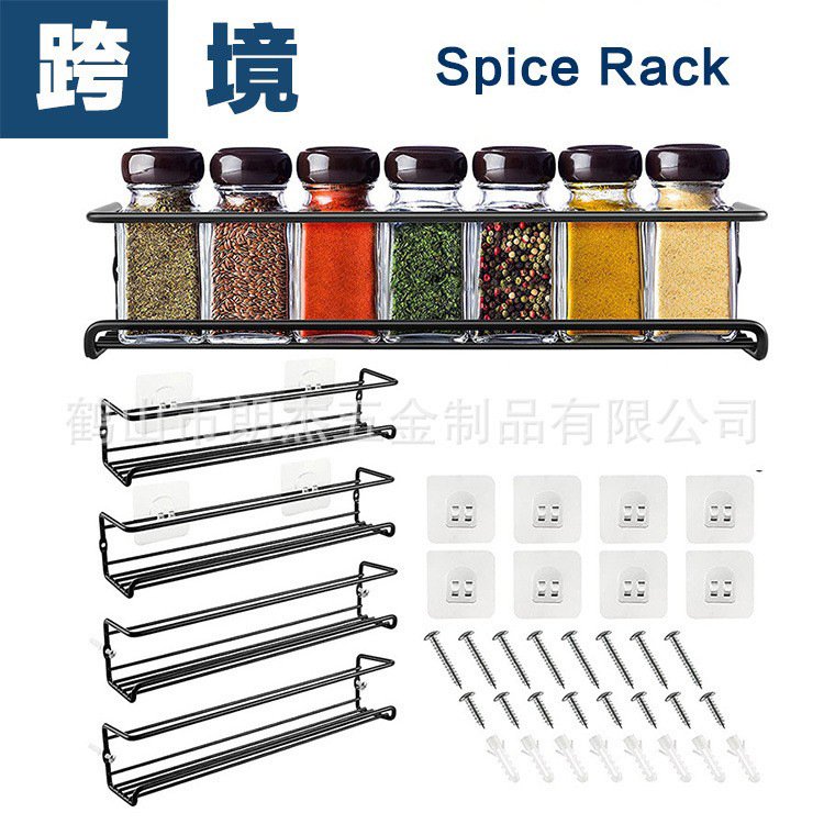 跨境金属置物架厨房壁挂式香料架免打孔厨柜门收纳架子spice rack