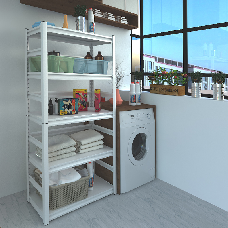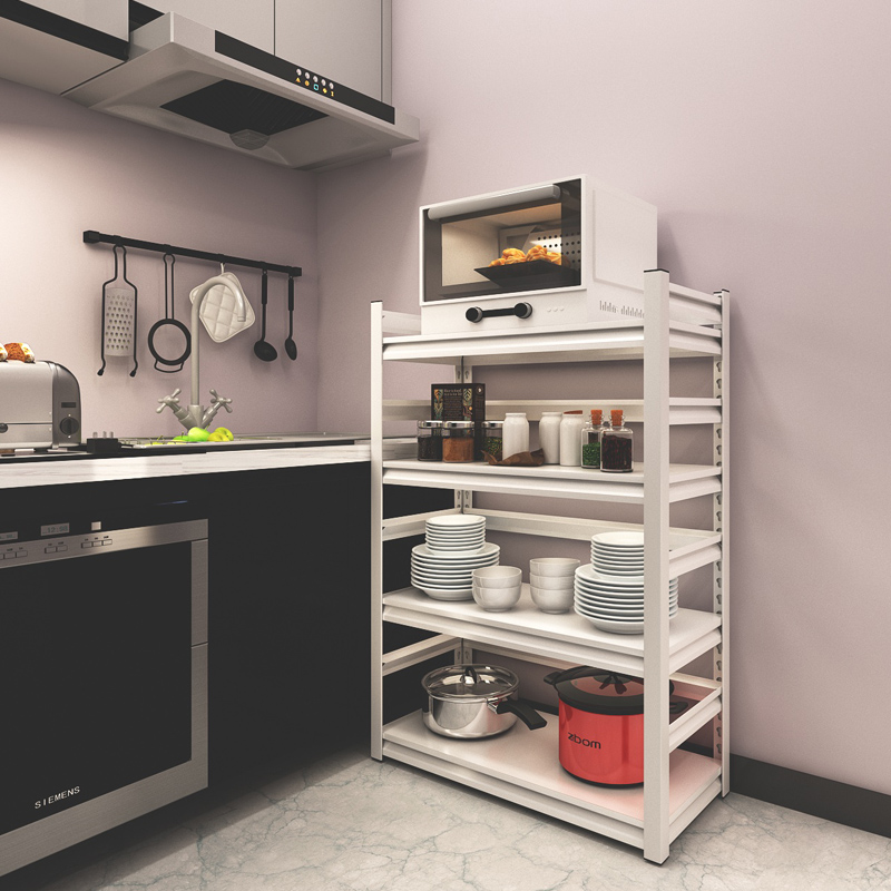 白色五层带围栏落地金属置物架厨房微H波炉收纳架阳台客厅整理架