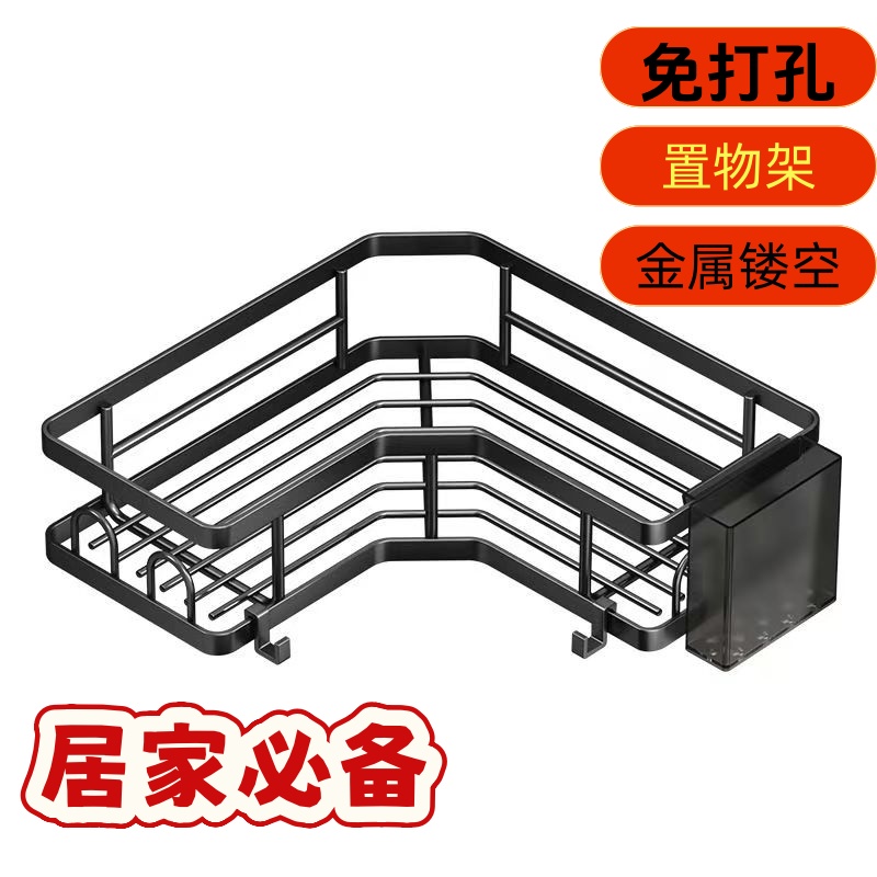 免打孔转角置物架卫生间挂架厨房加粗不锈钢金属厕浴室粘墙三角架