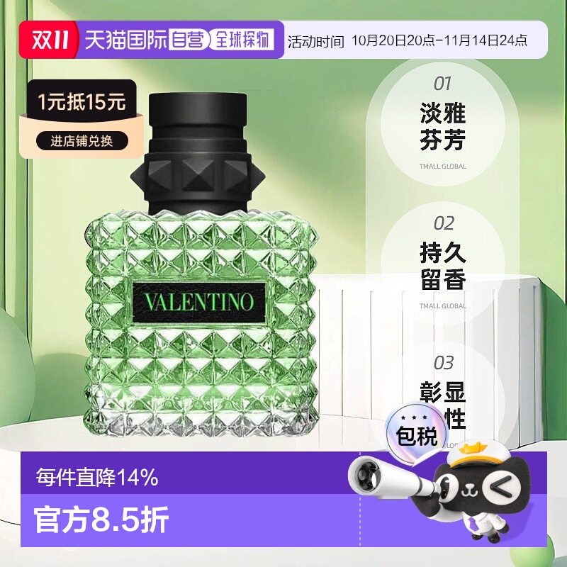 欧洲直邮Valentino华伦天奴绿色纵享随性小姐香水30/50/100ml正品