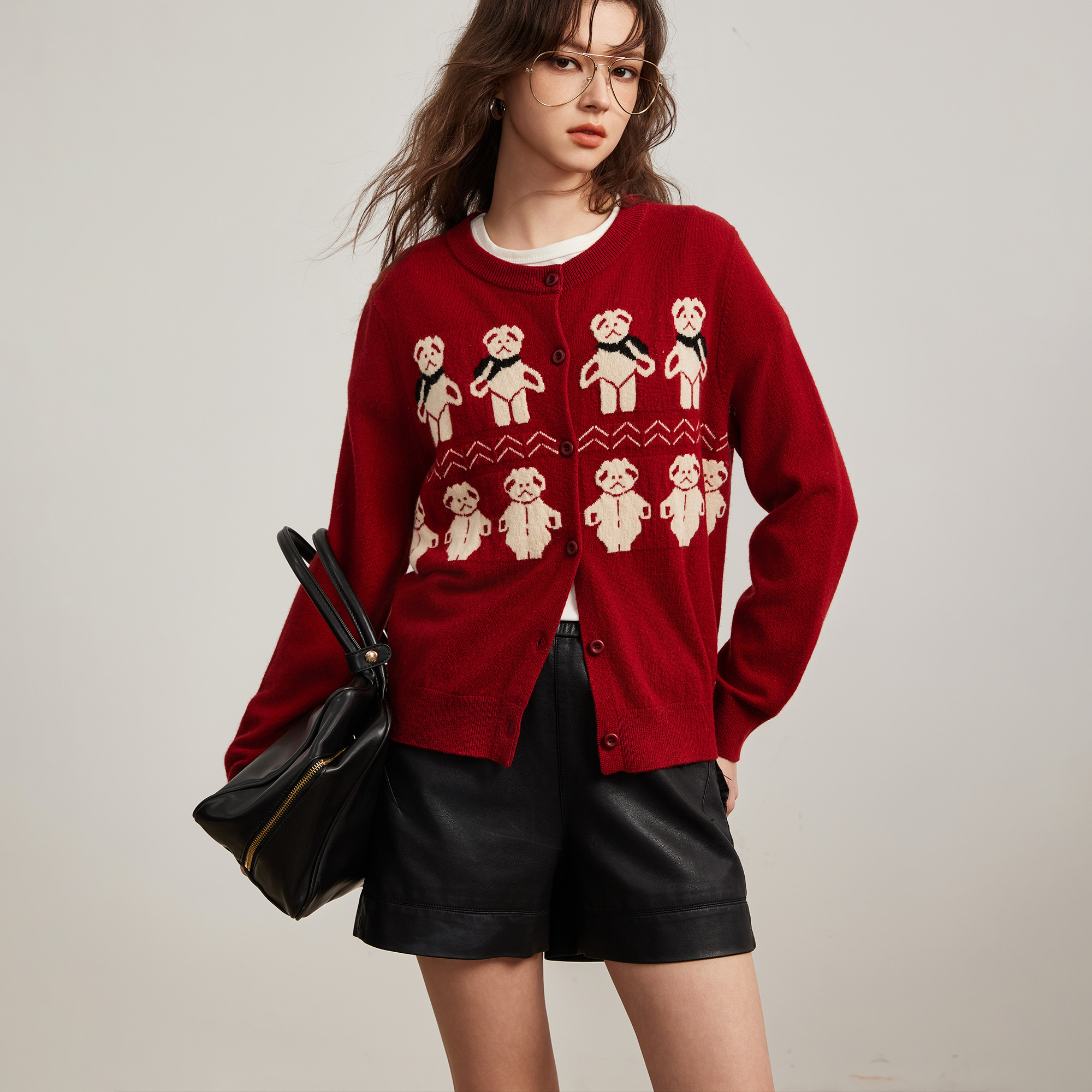 TeenieWeenie小熊毛衣女25秋季圣诞氛围感新年提花时尚慵懒针织衫