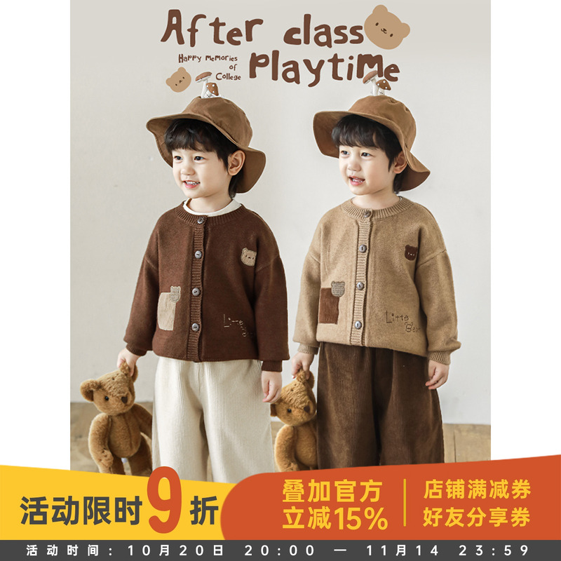 幼悠男童2025新款长袖圆领小熊毛衣秋季潮牌宽松休闲保暖儿童上衣