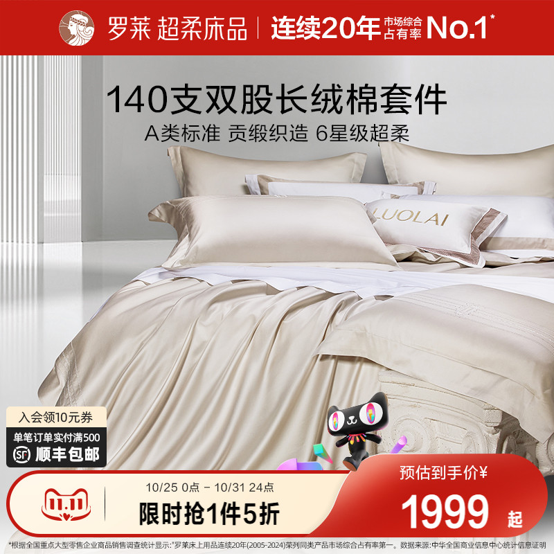 罗莱家纺官方旗舰店140支四件套长绒棉高端床品纯棉床单被套被罩