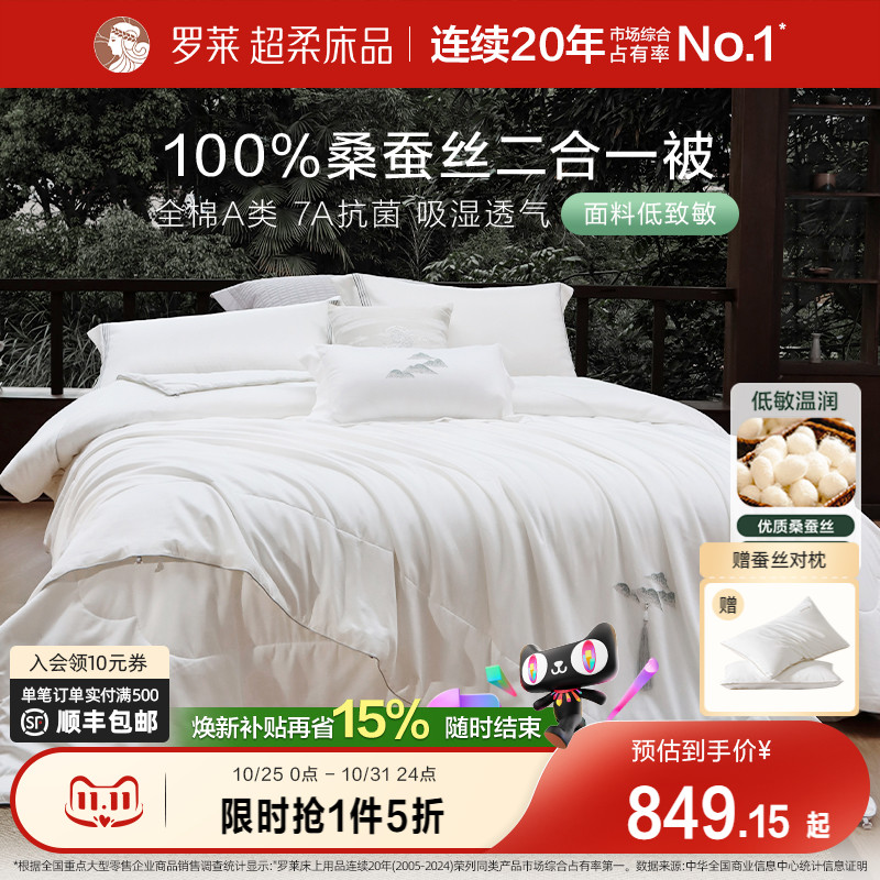罗莱家纺官方旗舰店正品被子被芯100%蚕丝冬被二合一子母被蚕丝被