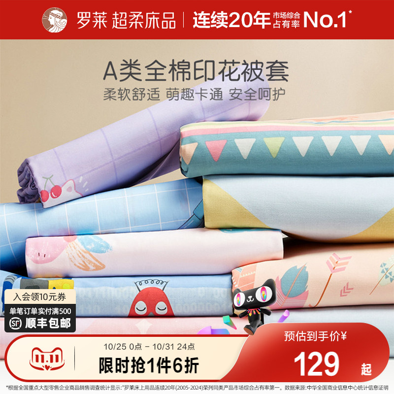 罗莱家纺儿童A类纯棉被套卡通女孩男孩全棉床上用品学生宿舍开学