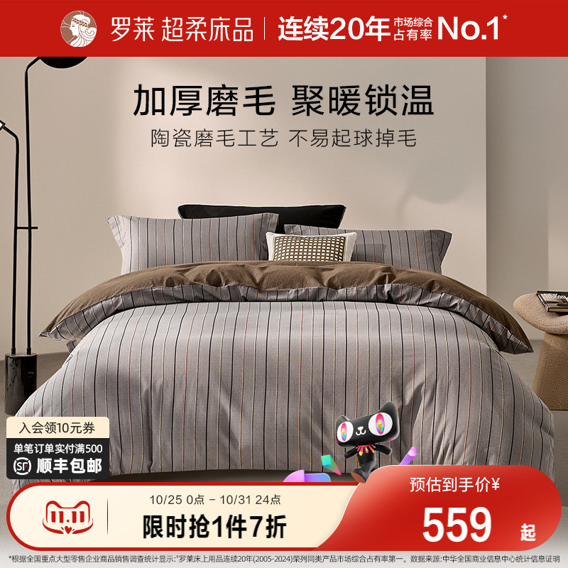 罗莱家纺25秋冬新品床上用品磨毛纯棉加厚床单被套全棉被罩四件套