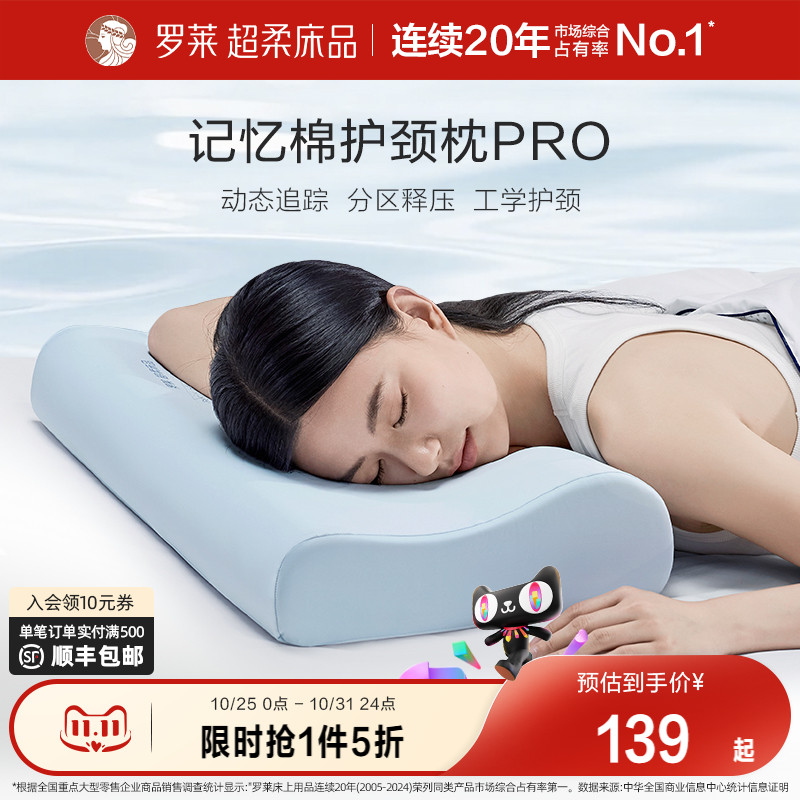 罗莱家纺记忆棉护颈枕pro慢回弹枕头辅睡眠学生枕宿舍成人枕芯A类