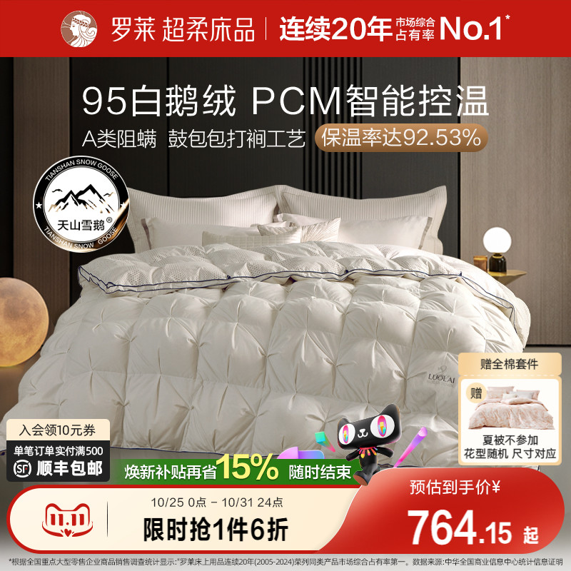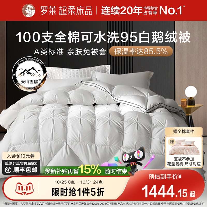 罗莱家纺LOVO乐蜗羽绒被95白鹅绒被子被芯冬被保暖春秋被子母被
