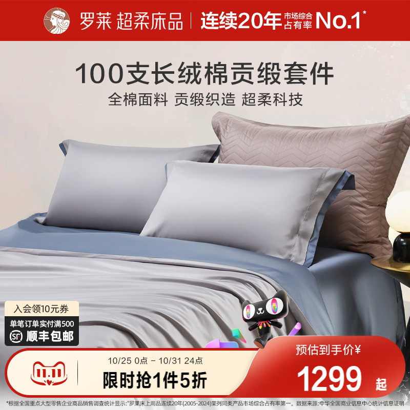 罗莱家纺官方旗舰店床上用品100支长绒棉全棉纯棉套件床单四件套