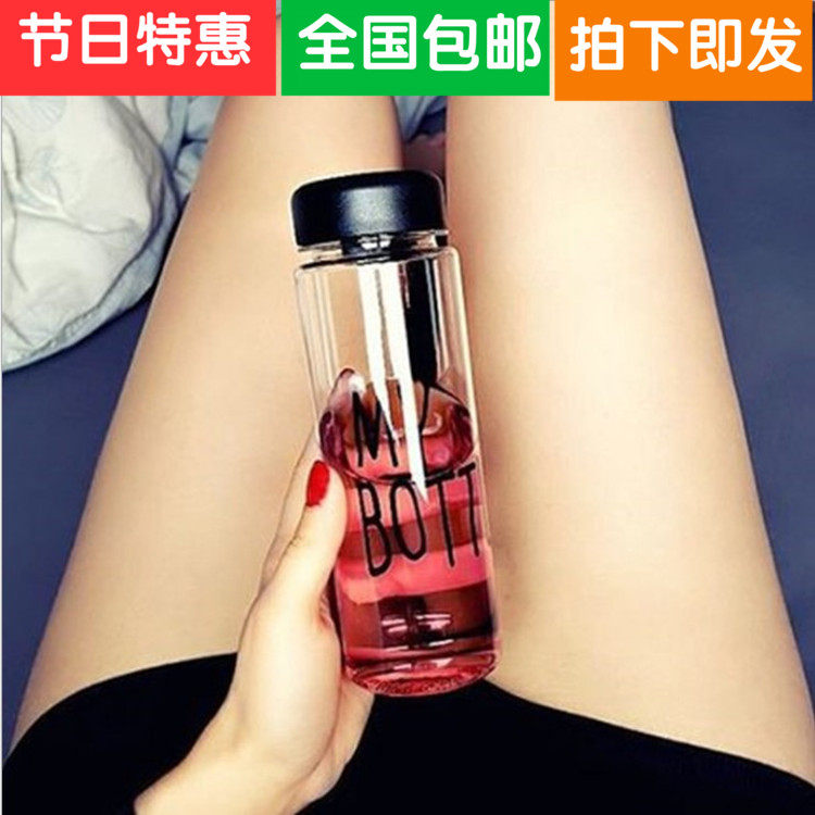 韩国my bottle便携塑料杯 简约水杯子随手杯磨砂水瓶学生带盖玻璃