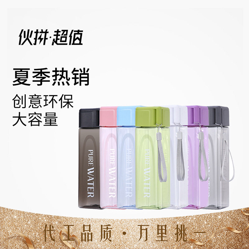 My bottle透明随手杯方形塑料杯透明男女柠檬水杯子礼品广告