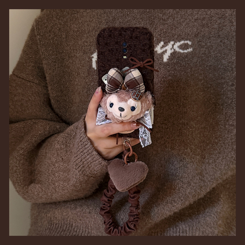 蝴蝶结达菲熊适用oppor17手机壳r15x秋冬r11splus毛绒r11s带r9挂绳r9plus卡通r7s立体r17pro绒布oppo冬天0pp0