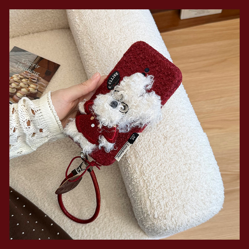 毛绒眼镜小狗适用oppor17手机壳r15x红色r11splus新年r11s带r9挂绳r9plus秋冬r7s毛茸茸r17pro卡通oppo可爱女