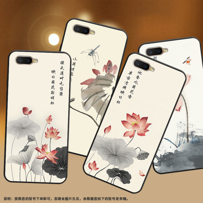 适用OPPOR17Neo手机壳AX7Pro保护壳全包边AX7Pro磨砂壳水墨画荷花超薄国潮挂绳潮流防滑中国风男女款简约喜庆