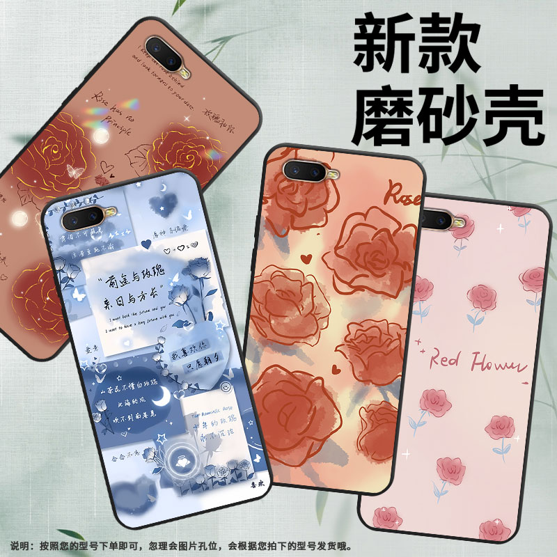 适用OPPOR17Neo手机壳AX7Pro保护壳全包边AX7Pro磨砂壳红玫瑰男女款硅胶轻奢撞色文字新款挂绳简约喜庆耐脏