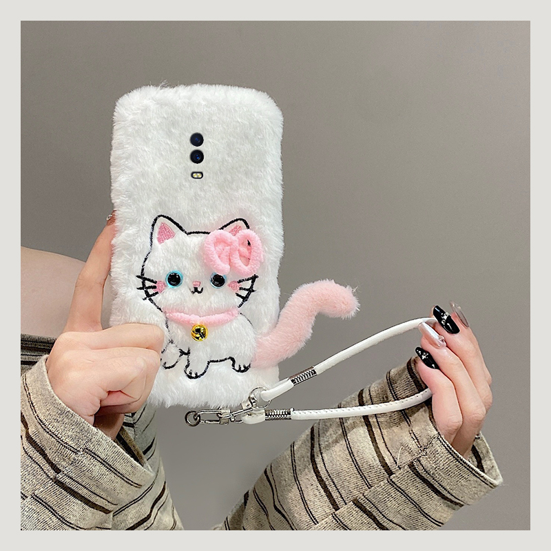刺绣可爱猫咪适用oppor17pro手机壳r15x梦境版r11splus挂件r9s挂绳r7plus秋冬季r17毛绒oppo毛茸茸0pp0硅胶软