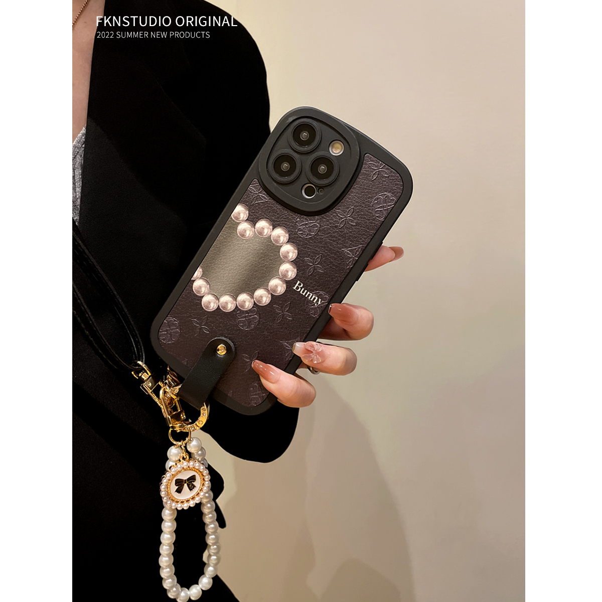 爱心珍珠手链斜挎适用OPPOreno8pro手机壳reno7Pro潮女背包reno7/6/5/4/3/5k高级感se软r17挂绳oppor15保护套