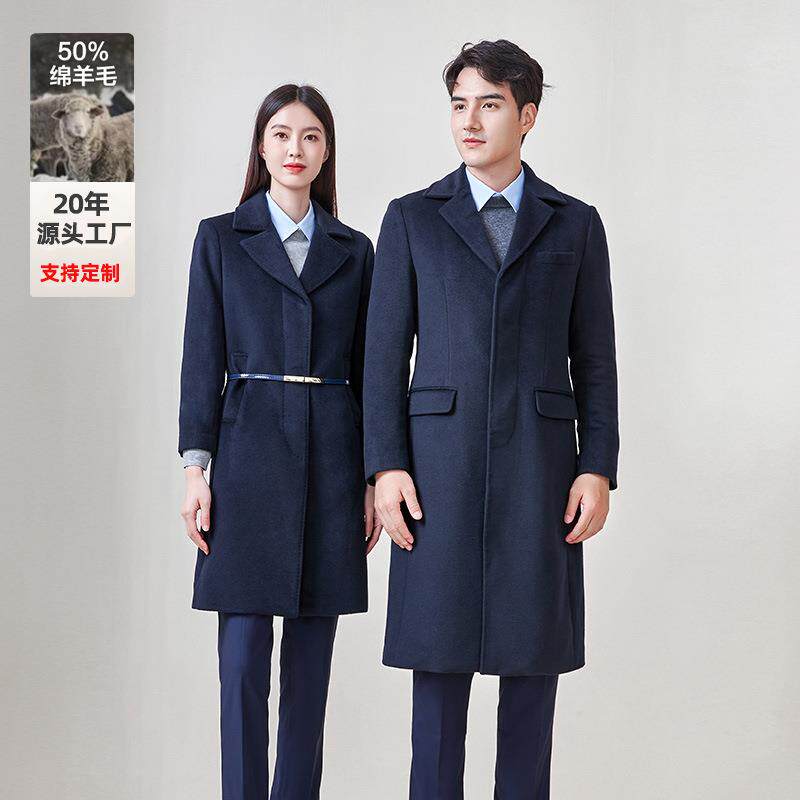 加长款羊毛大衣男女同款毛呢外套工装商务通勤呢子职业工作服厂家
