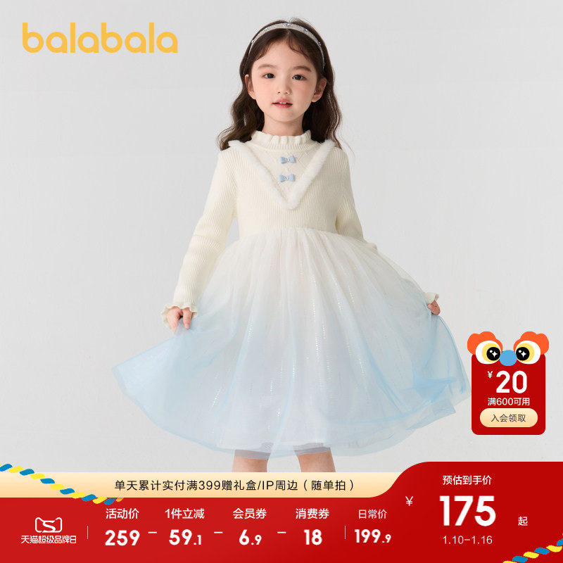 巴拉巴拉童装女童公主裙2025秋冬装新款儿童连衣裙拼接针织网纱裙