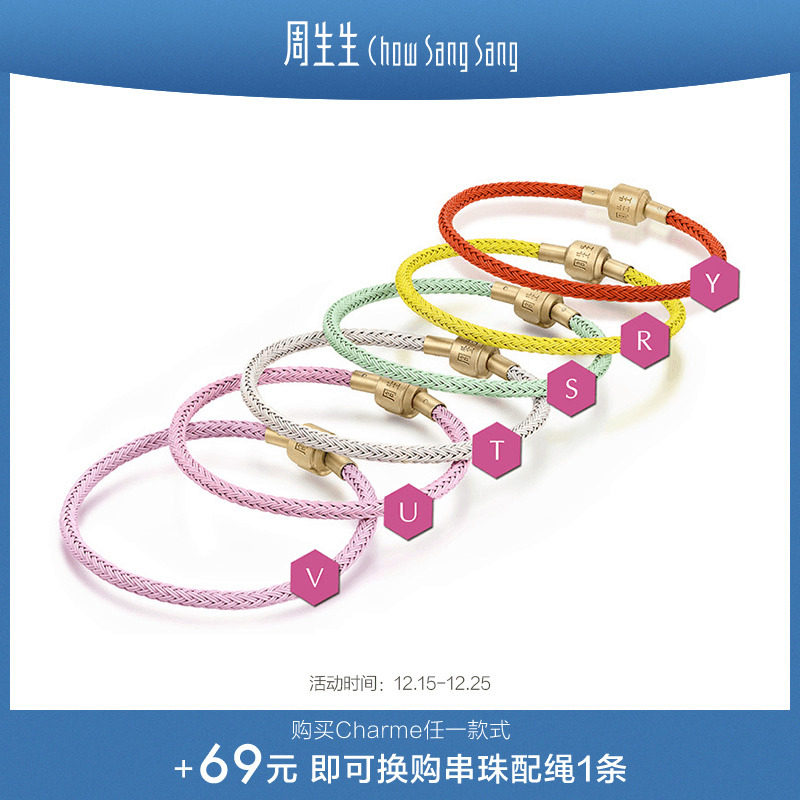 周生生Charme XL串珠配绳约5mm粗绳编织手绳转运珠不锈钢绳