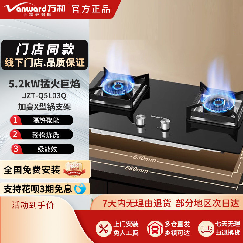 万和Q5L03Q燃气灶台式灶大火力旋风猛火防烫5.2火力钢化玻璃面