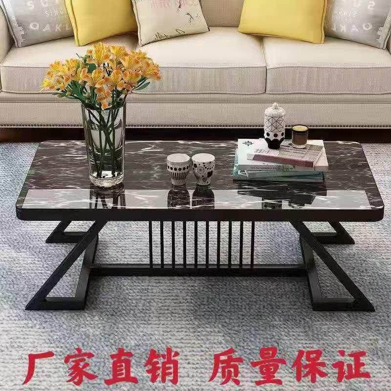 北欧轻奢钢化玻璃面长方形小户型铝型材茶几金属组装客厅茶桌简约