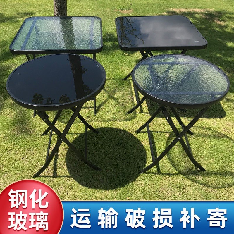 户外折叠桌钢化玻璃面圆桌方桌阳台桌奶茶店家用餐桌便捷式小圆桌