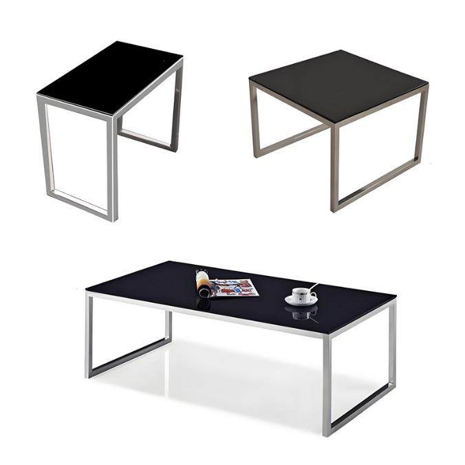 60×35小边几办公接待室黑色钢化玻璃面不锈钢架子茶几桌子休息室