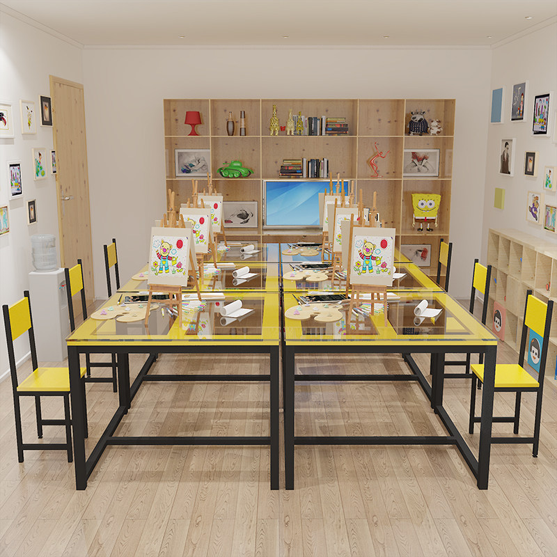 小学幼儿园课桌椅补习班彩色培训桌钢化玻璃面手工美术绘画学习桌