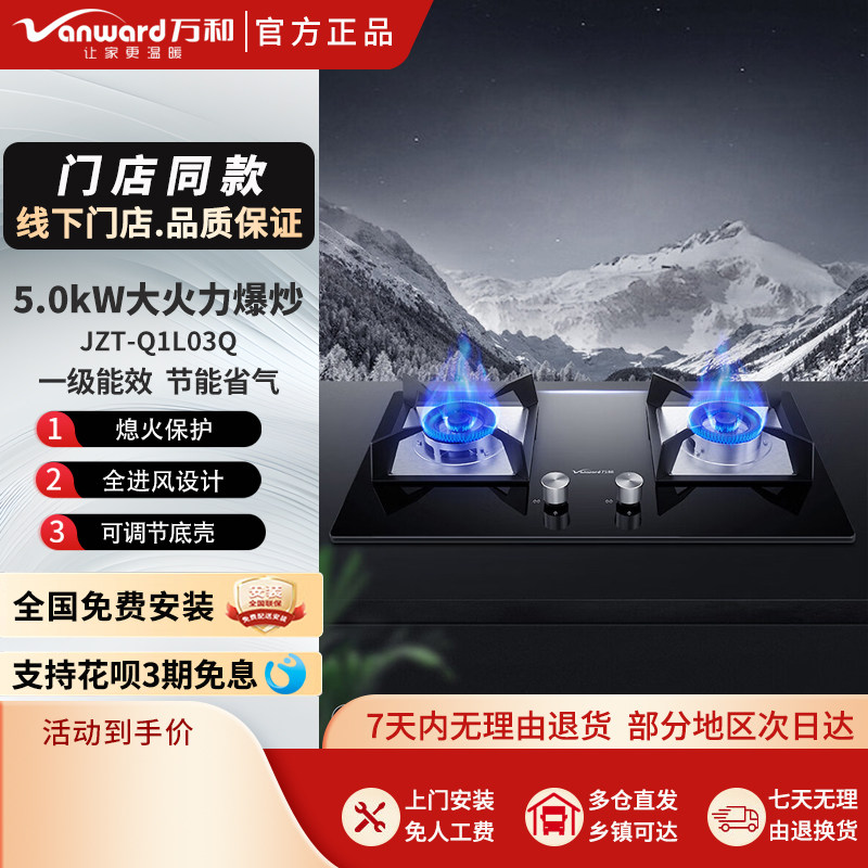 Vanward/万和 JZT-Q1L03Q 燃气灶台式灶猛火5.0kw火力钢化玻璃面