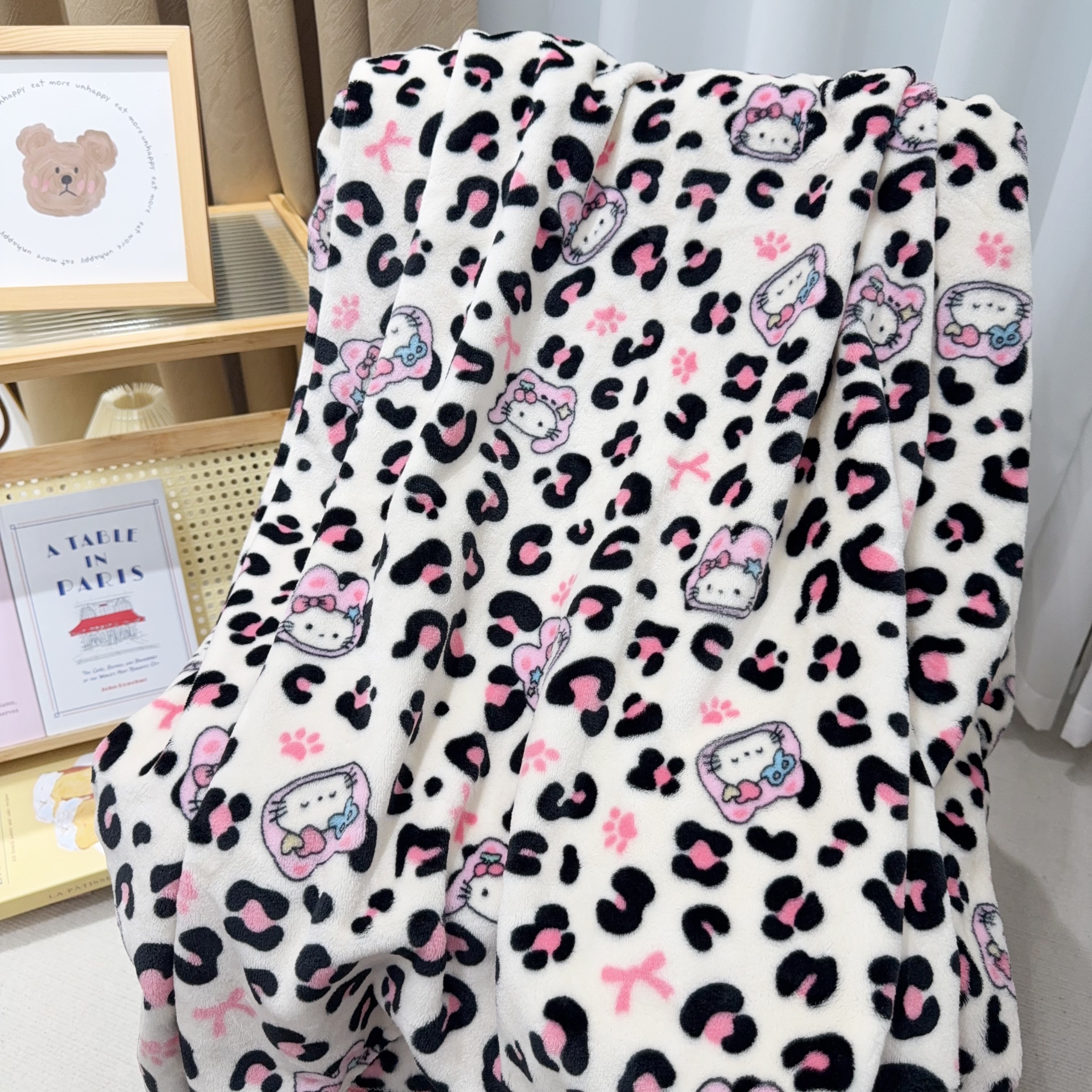 卡通粉粉猫毛毯少女心秋冬ins盖毯学生宿舍铺床毯午睡毯沙发毯
