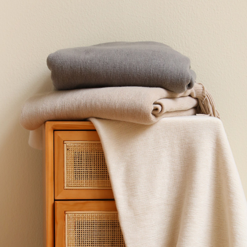 侘寂风床尾巾 民宿酒店样板间沙发巾 北欧纯色沙发毯美式针织盖毯