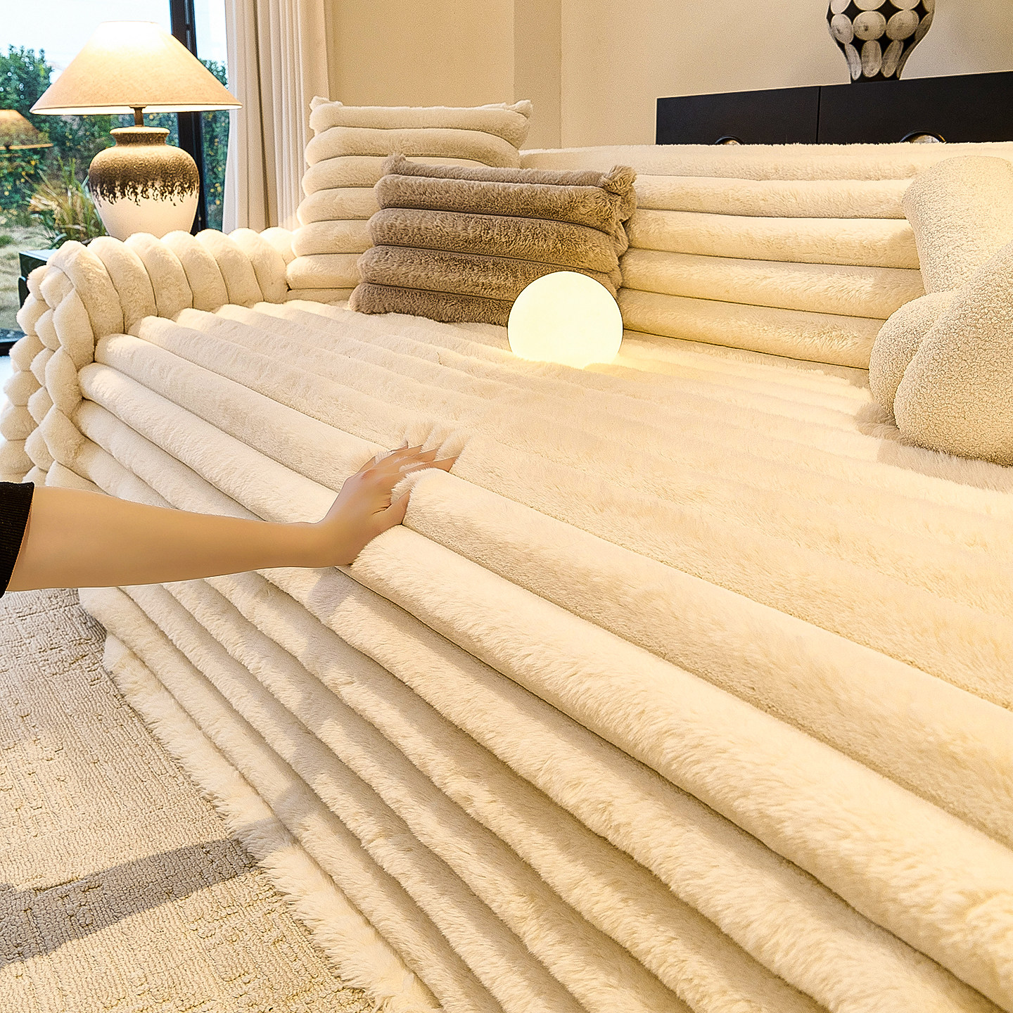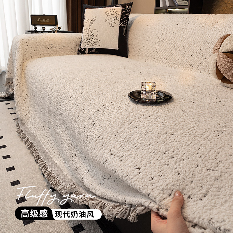 ins奶油风秋冬款高级感毛绒沙发盖布全盖沙发巾沙发套沙发毯新款