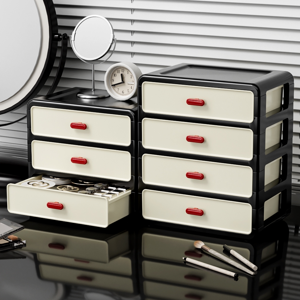抽屉式桌面收纳盒办公室工位整理文具置物架镀金把手化妆品储物柜