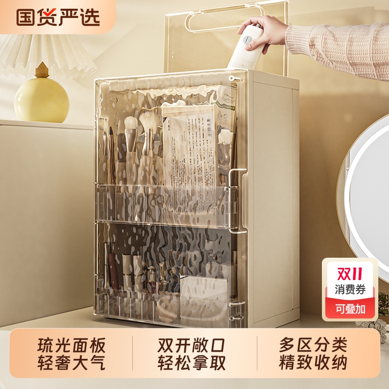 高级感化妆品收纳盒桌面置物架防尘新款护肤品化妆盒梳妆台化妆柜
