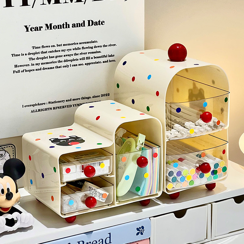 日系ins手账文具收纳盒大容量书桌面防尘痛柜平价防尘化妆柜抽屉