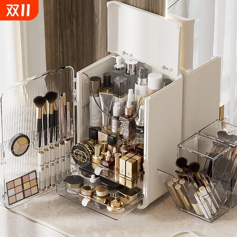 化妆品收纳盒桌面防尘护肤品置物架梳妆台一体柜抽屉大容量化妆柜