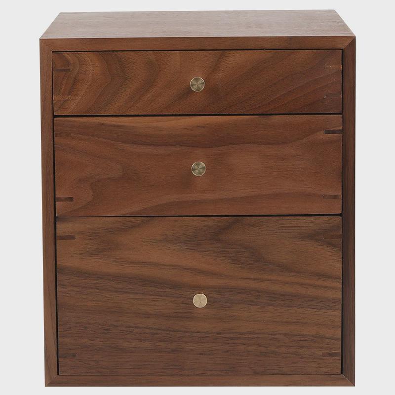简约实木收纳桌面柜收纳办公室桌上木制带抽屉式杂物化妆柜置物架