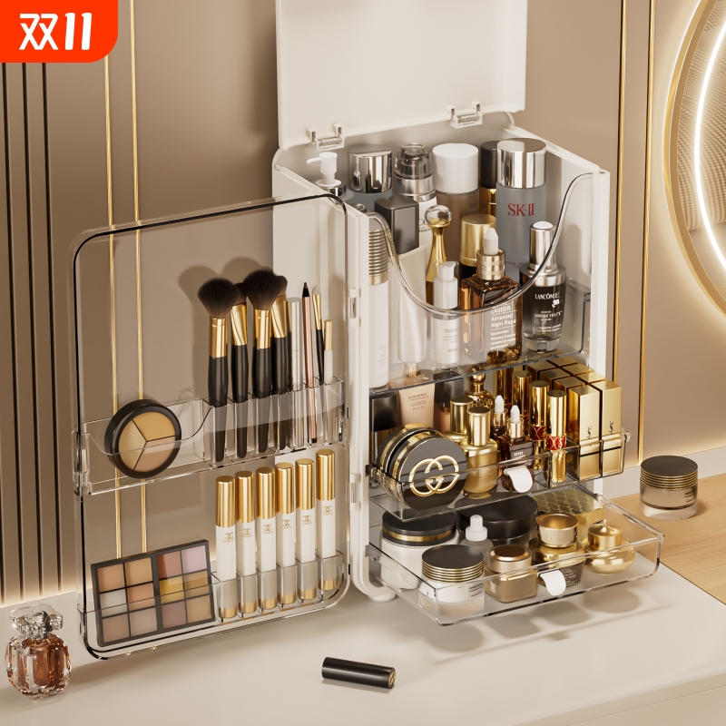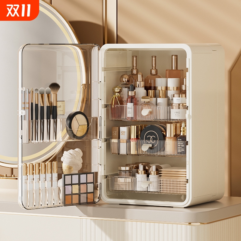 化妆品收纳盒防尘梳妆台护肤品桌面置物架大容量化妆盒化妆柜香水