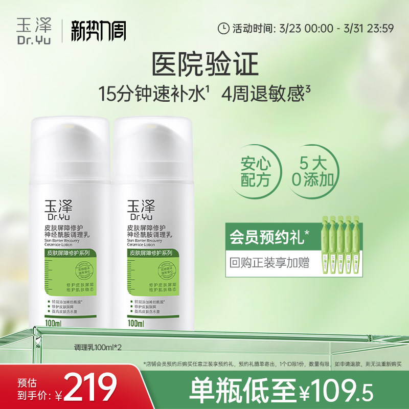 玉泽调理乳液皮肤屏障修护神经酰胺补水保湿舒缓干燥干敏肌敏感肌