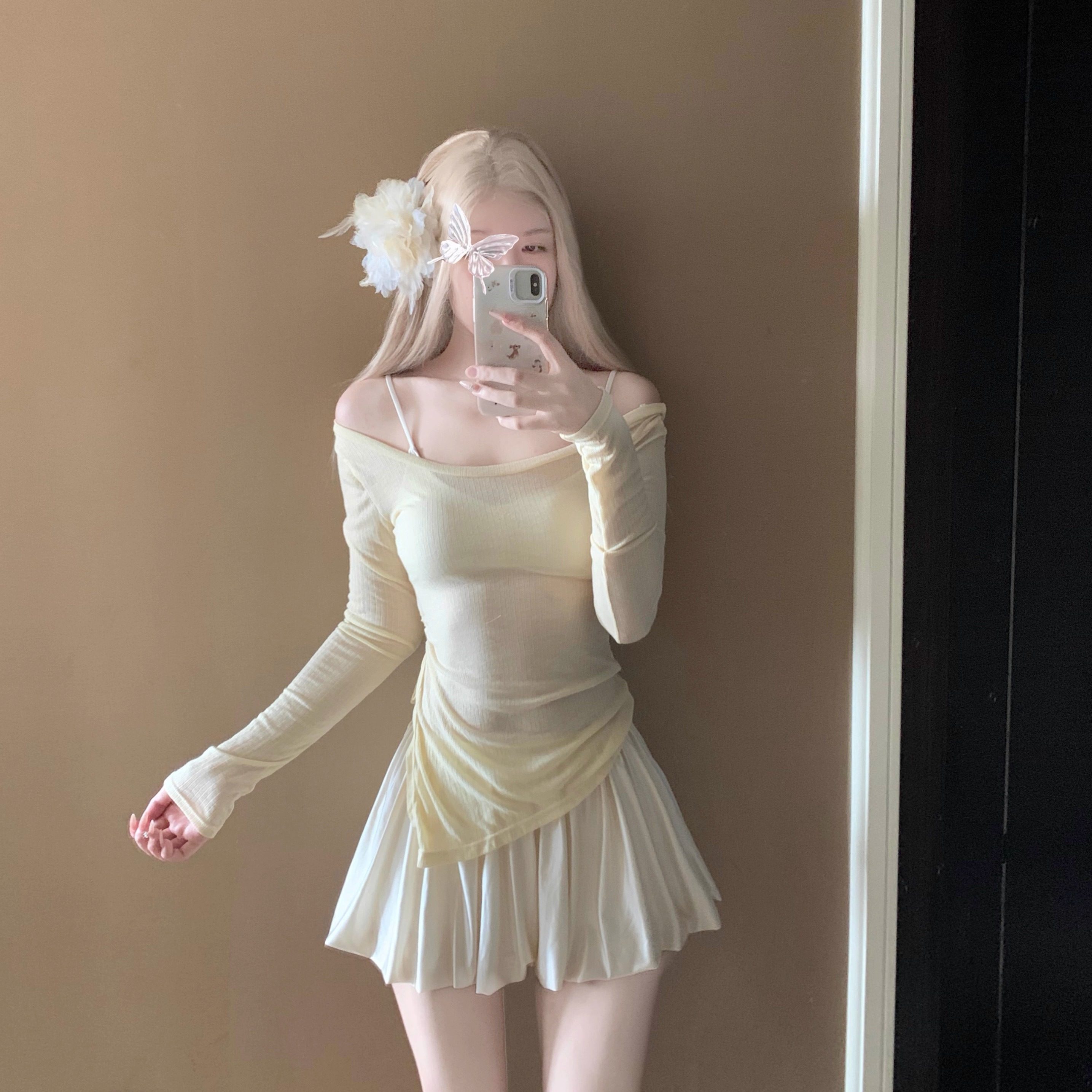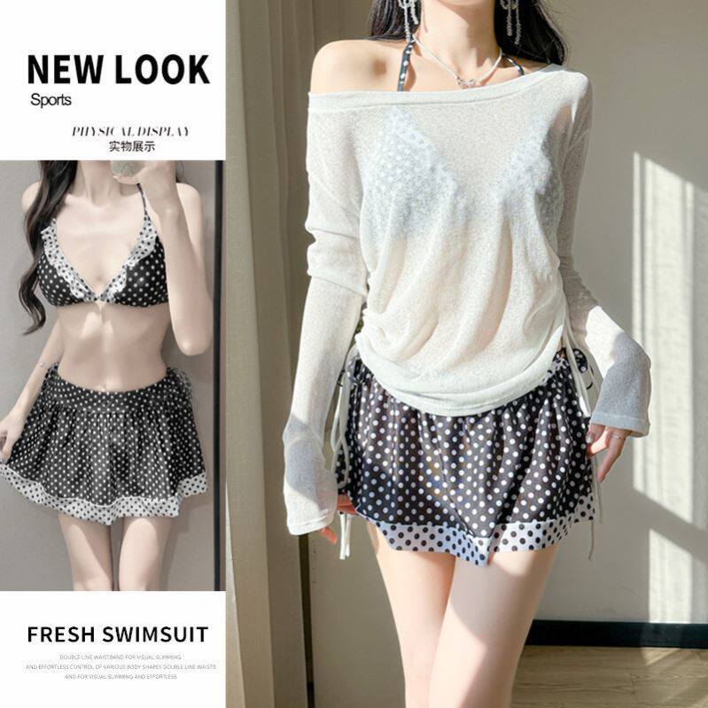 AYSTUDIO纯欲少女分体裙式比基尼游泳衣女保守长袖罩衫显瘦度假风