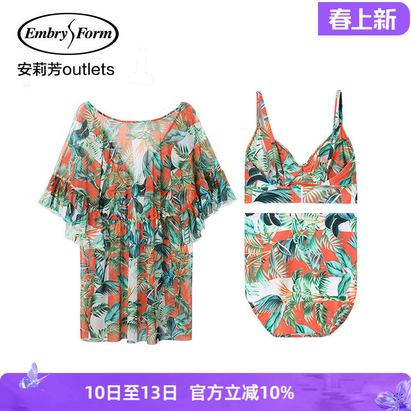 安莉芳官方奥莱夏季时尚印花分体泳衣度假沙滩泳池比基尼游泳衣女